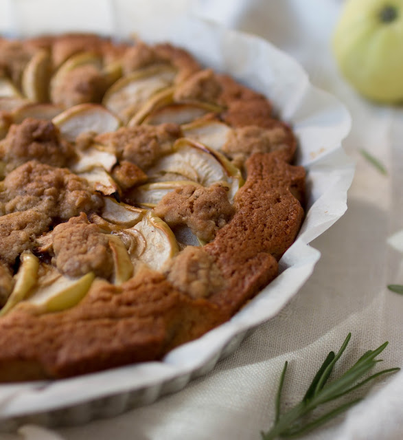 Vaahdota pehmeä voi ja sokerit. Lisää vehnäjauhot, joihin leivinjauhe ja vaniljasokeri on sekoitettu. Ota noin 1.5 dl taikinaa syrjään ja lisää jäljelle jääneeseen taikinaan loput ainekset. Voitele piirakkavuoka ja levitä taikina siihen. Poista omenoista siemenkota, viipaloi ja lado taikinan päälle. Ripottele hiukan kanelia ja sokeria omenoiden päälle. Lisää loppuun taikinaan 4-viljan hiutaleet ja mausteet ja murusta seos omenoiden päälle.